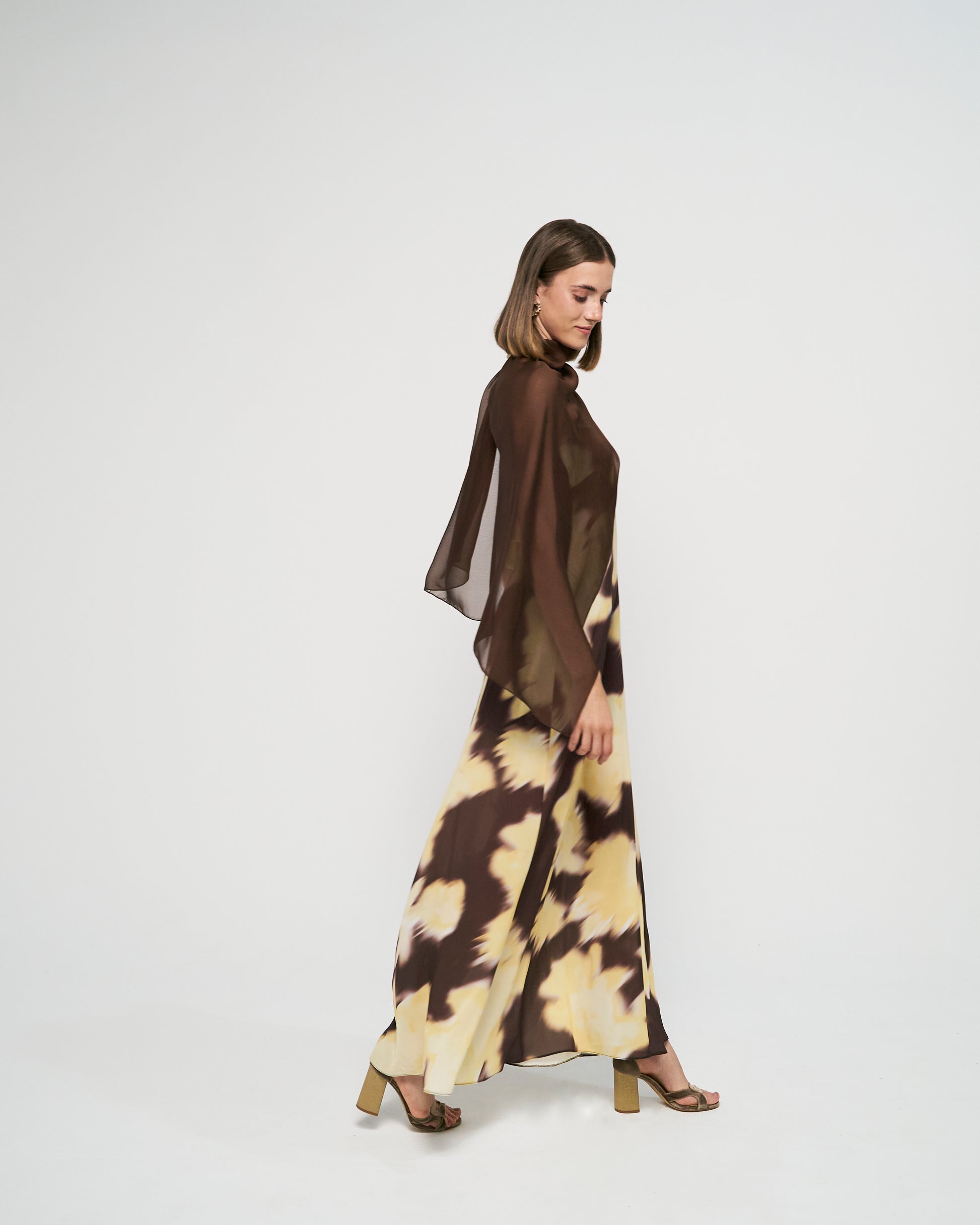 Capa de invitada en gasa catiónica de doble hilo en color marrón chocolate, el color de la temporada.
