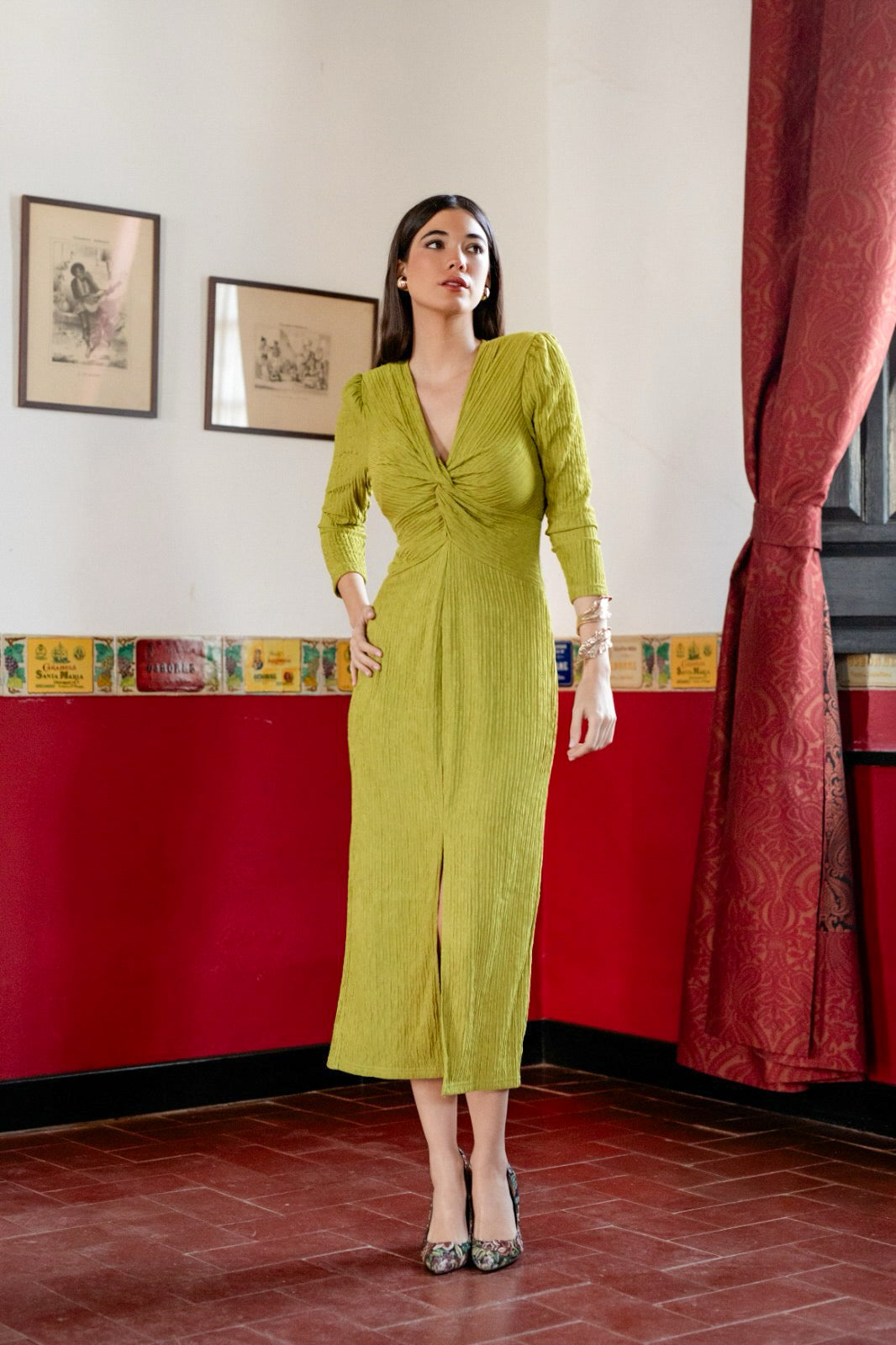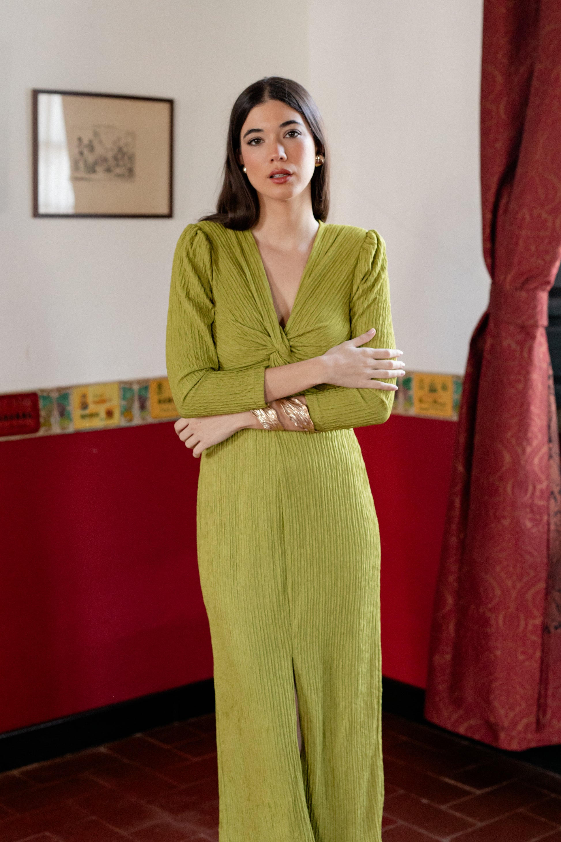 Acierta en cualquier evento con nuestro vestido de invitada verde pistacho de la colección GALA.