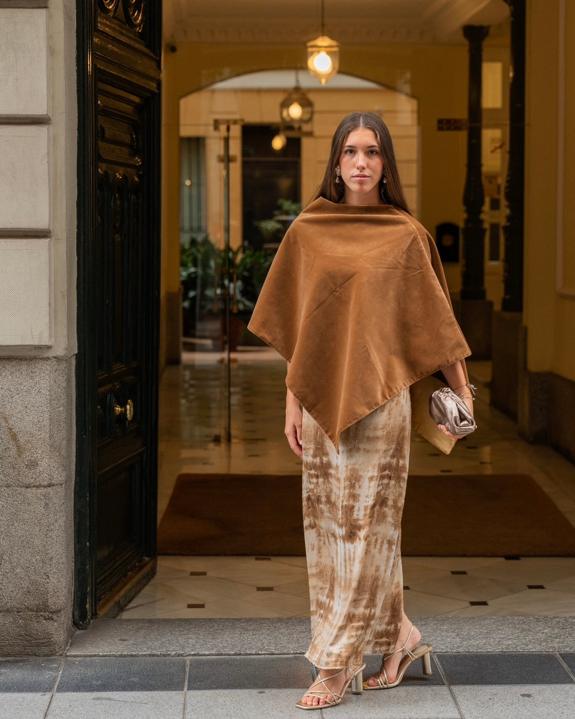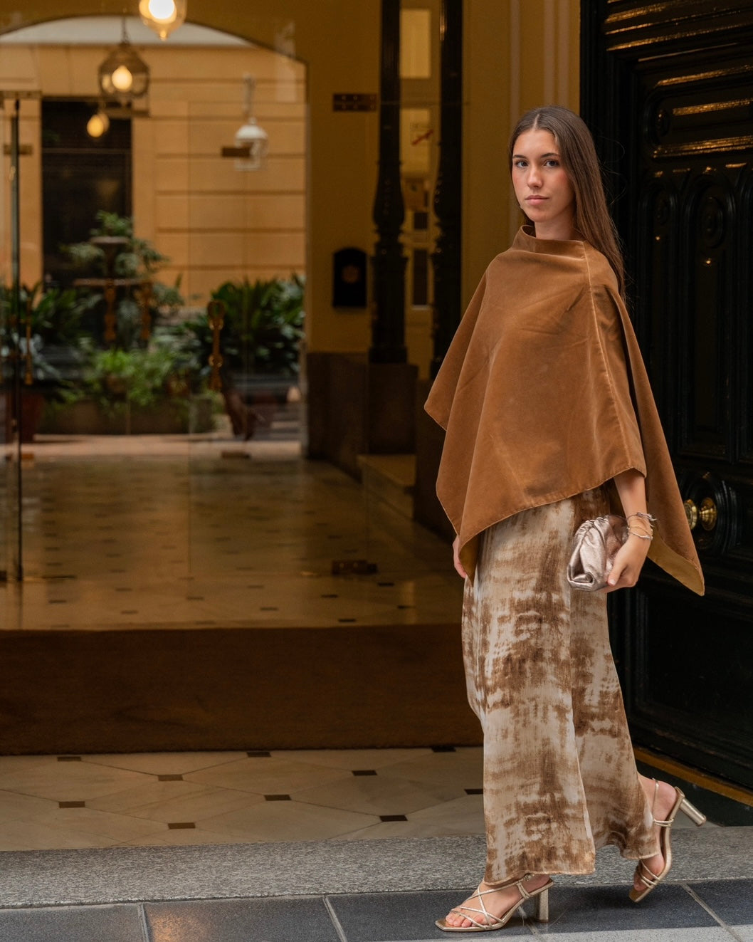 Poncho terciopelo marron caramelo - Invitada de invierno