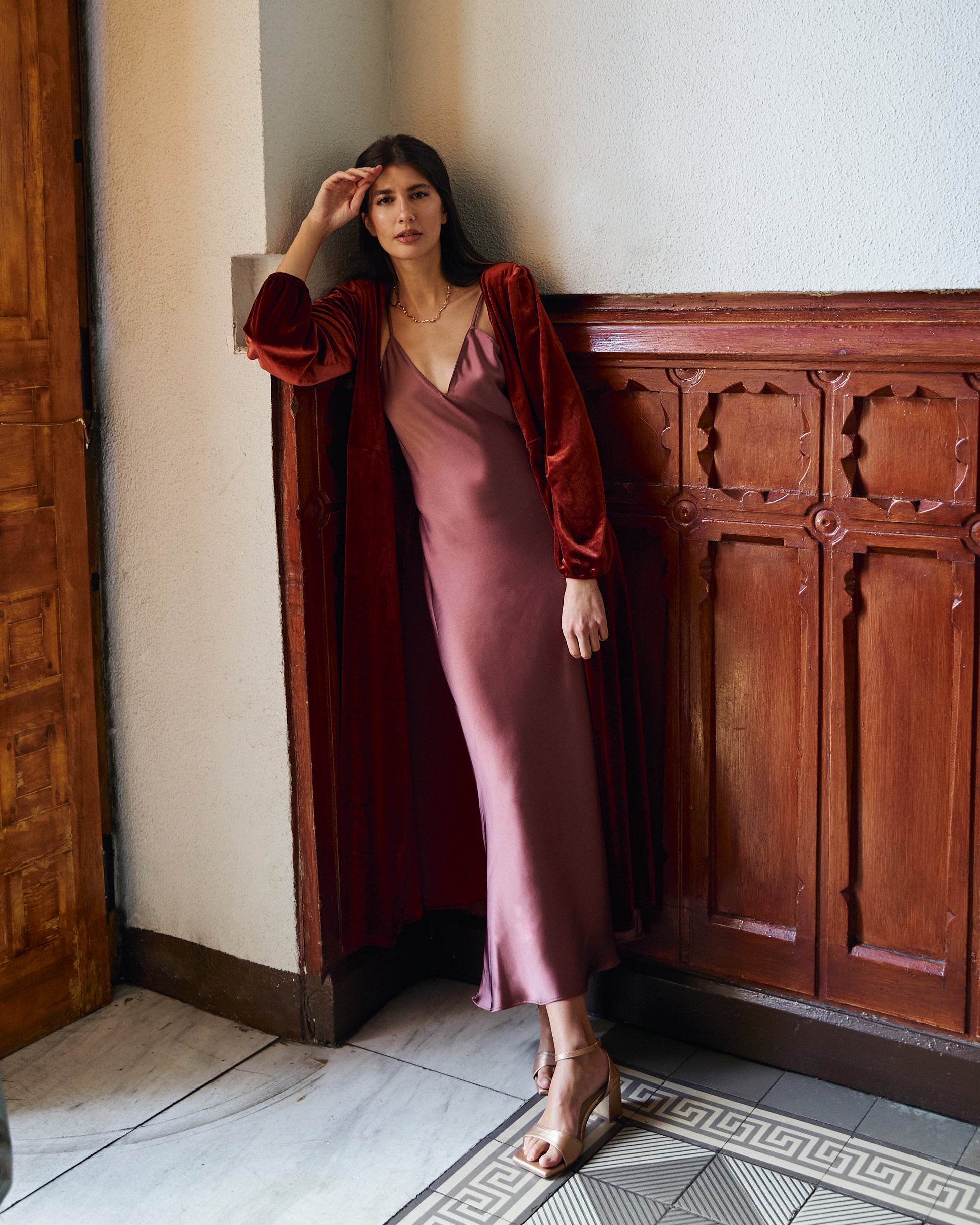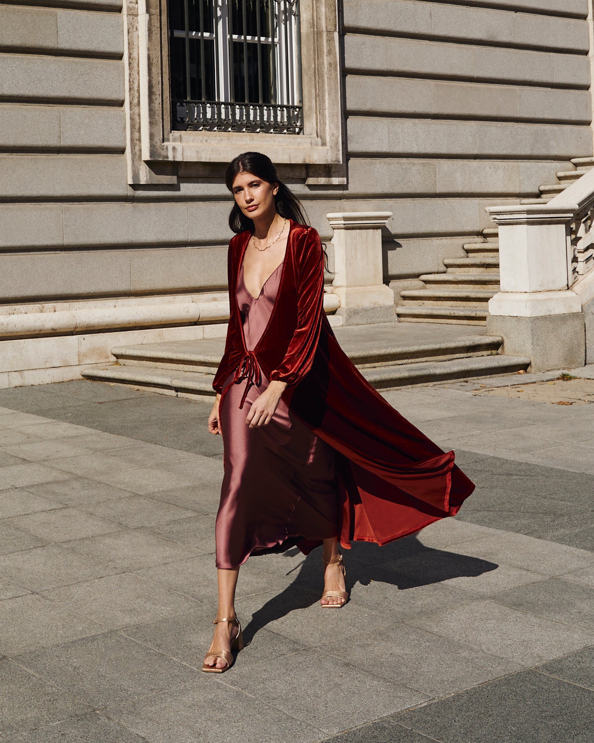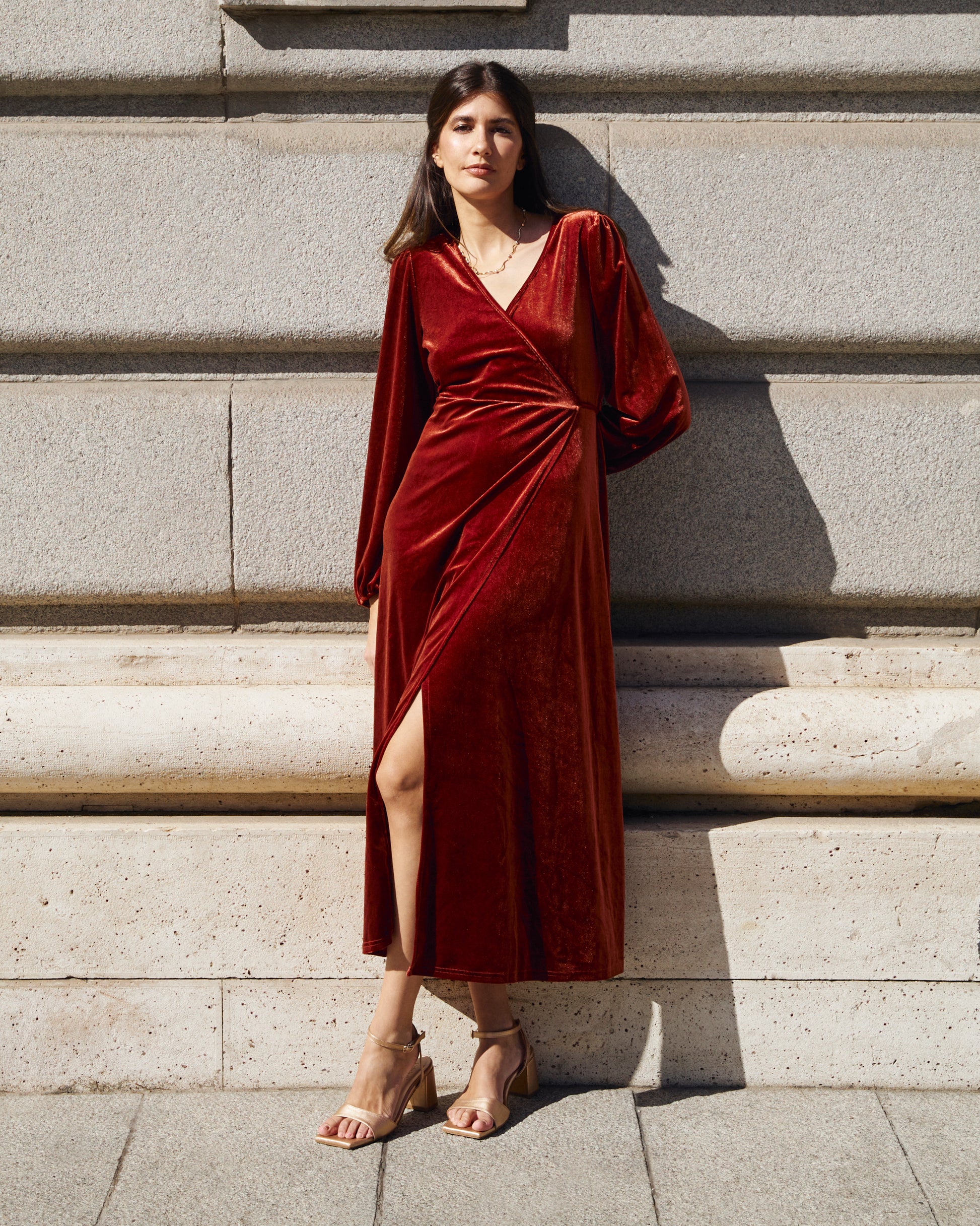 Invitada de invierno - Abrigo de terciopelo teja