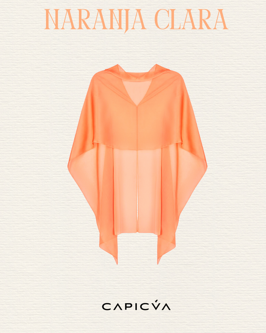 La tela es una gasa de doble hilo, catiónica, con muchísimo movimiento, en color naranja clarito, color albaricoque.