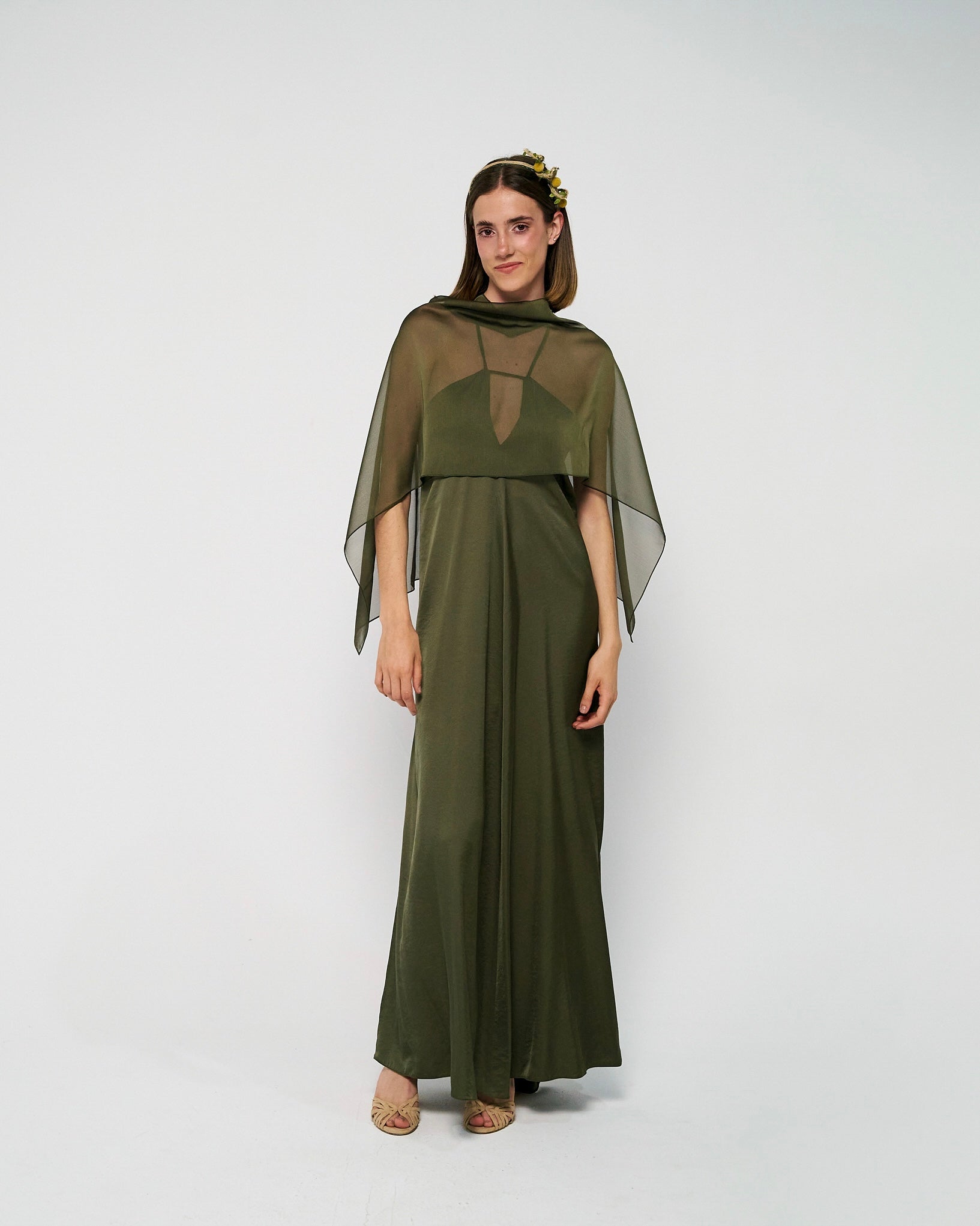 La tela es una gasa de doble hilo, catiónica, con muchísimo movimiento, en color verde caza.